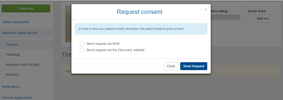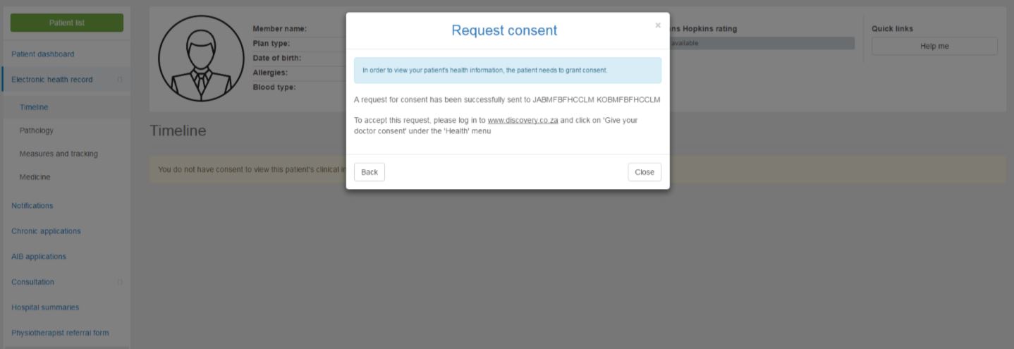 TAKE NOTE: consent via the Discovery website is not registered instantly, and the patient will have to log in to the Discovery website and give you consent manually.