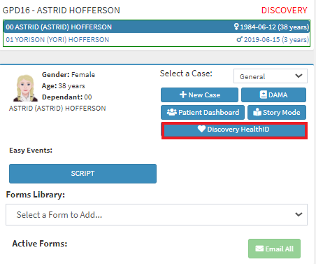 • Click on the Discovery HealthID button on the Clinical Sidebar to verify if the patient have an active plan with Discovery Health.