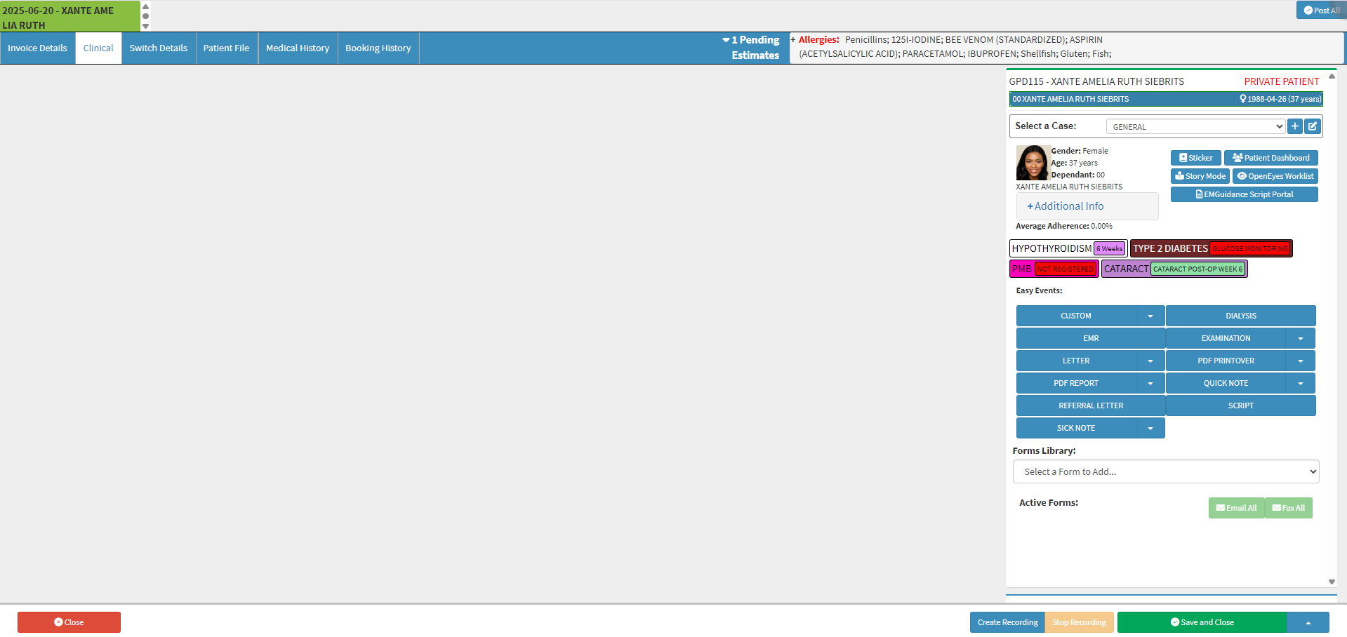 Allows the Practitioner to print a hard copy of the form, which is useful for filing the document in the Patient’s physical file, keeping a paper trail for legal or clinical purposes, or handing a printed copy to the Patient during a consultation for reference.