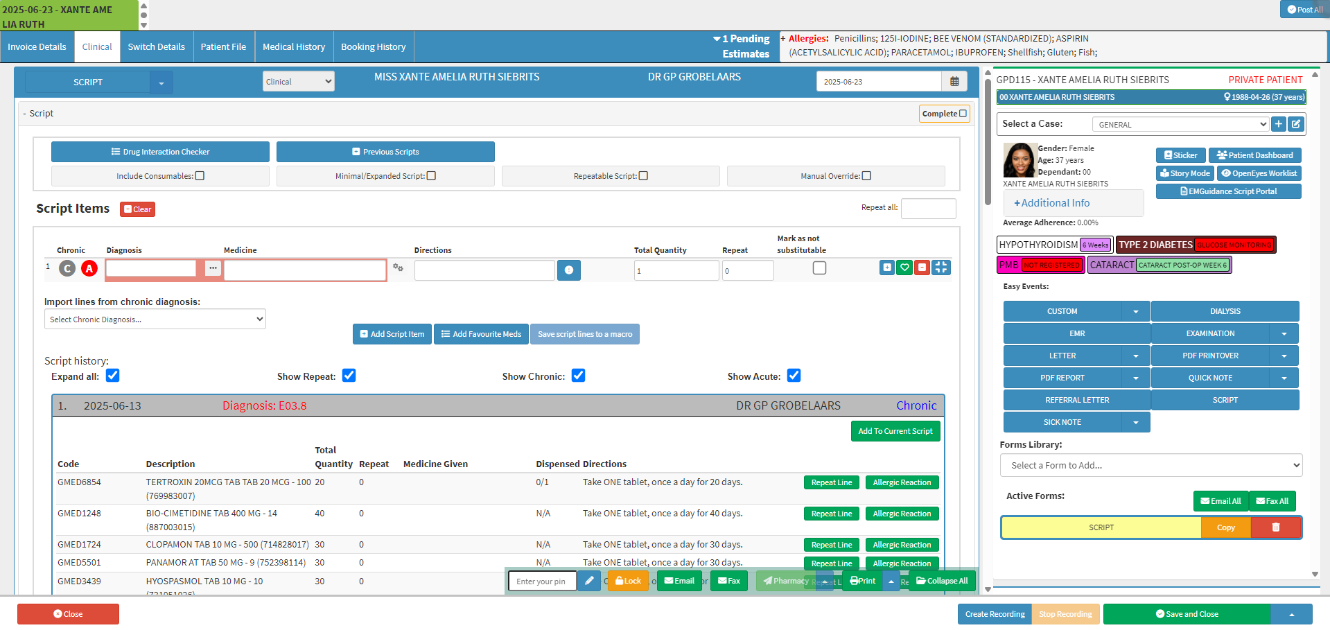- Click on the Pharmacy button to send a Script to the Pharmacy.