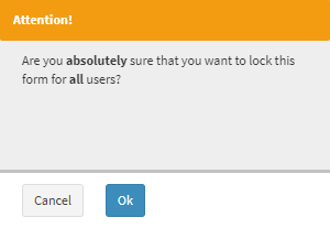 - A second Attention! pop-up will appear asking if you are sure you are absolutely sure you want to lock the form for all users.
