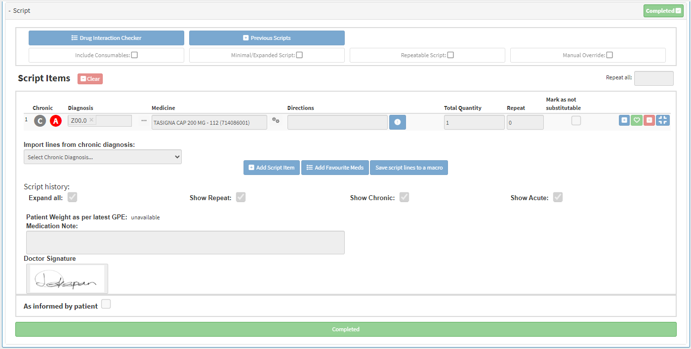- For more information regarding sending scripts to the Pharmacy, please refer to the user manual: Sending Scripts through Pharmacy Integrations.