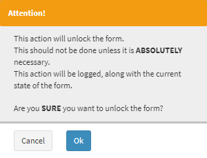 - An Attention! pop-up will appear to advise that this action will unlock the form.