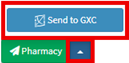 - Click on the drop-up menu on the Pharmacy button and then on the Send to GXC button.
