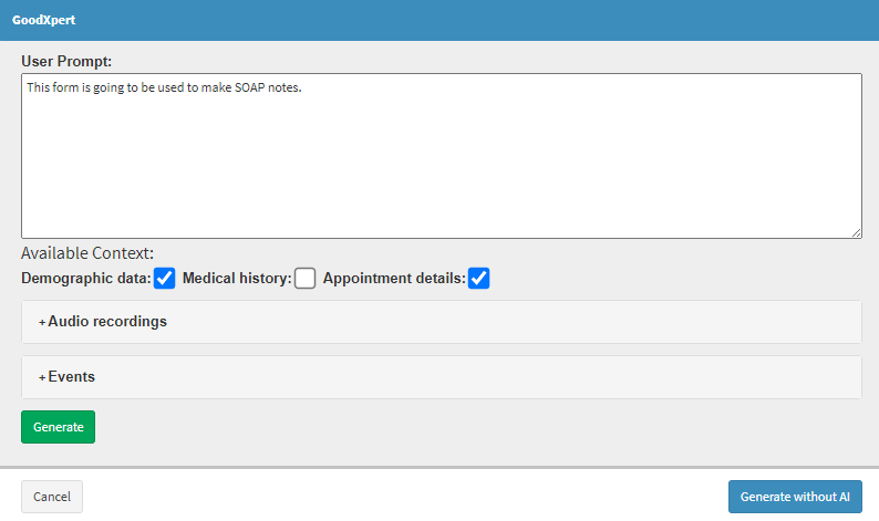 ?Please Note: The GoodXpert button only appears on Workflow Events where AI setup has been done. For more information regarding the setup of AI on Workflow Events, please refer to the user manual: How to Integrate AI into Workflow Events.