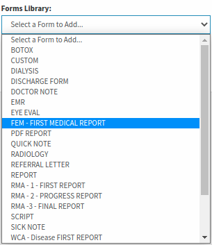 Please Note: In order for the Practice to use the FEM - First Medical Report form and for the Patient data to properly populate on the form, the Debtor needs to be loaded as an IOD Debtor. For more information on how to create an IOD Debtor, please refer to the user manual: Create New IOD Debtor.