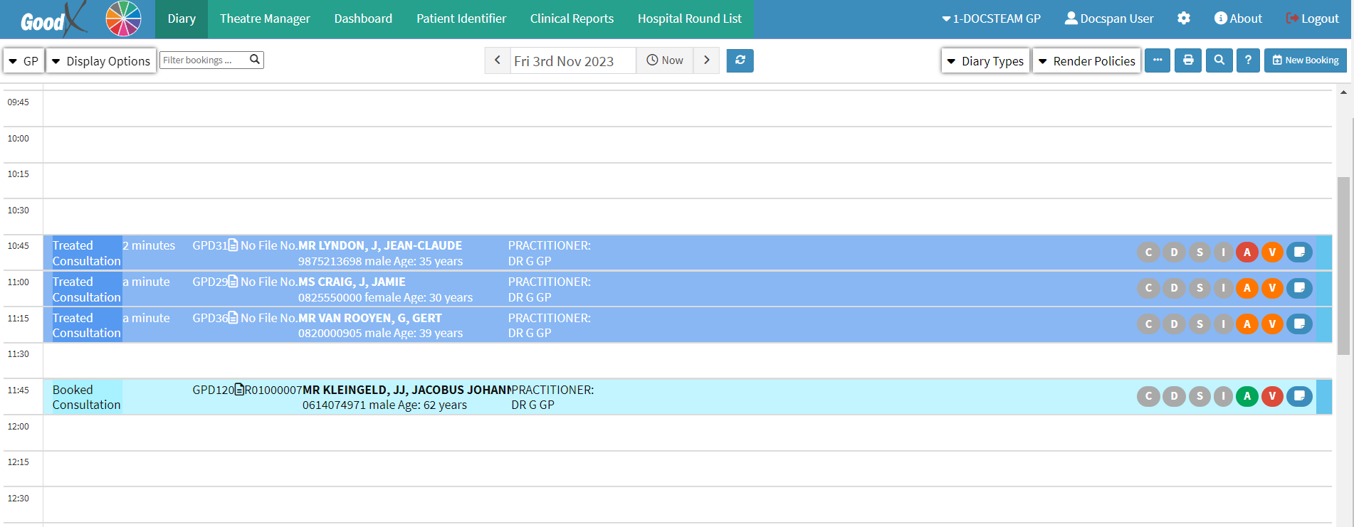 Date: The Date the Patient was seen by the Practitioner, this particular date will also be the date the booking was made. The Date can be entered manually or be selected from a Date Picker.