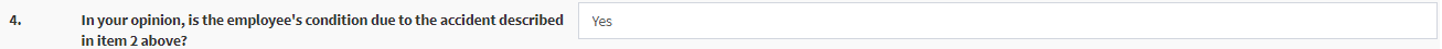 4. In your opinion, is the employee's condition due to the accident described in item 2 above?: Complete the Text box with a Yes/No answer.