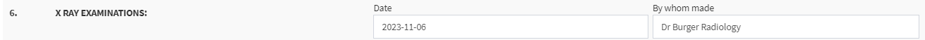 6. X-RAY EXAMINATIONS: If the Patient has been sent for an X-Ray examination, then the details need to be completed with the relevant information.