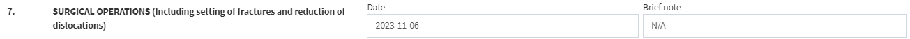 7. SURGICAL OPERATIONS (Including setting of fractures and reduction of dislocations): If the Patient has undergone any previous Surgical Operations or has any fractures set or dislocations reduced.