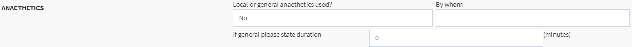 Local or general anaesthetics used? Complete the question in the Text box/field with a Yes/No answer.