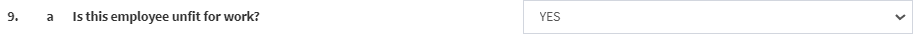 9.a Is this employee unfit for work?: Select the correct Yes/No answer from the drop-down menu, to indicate if the Patient is unfit for work.