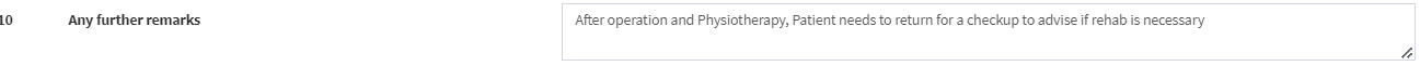 10. Any further remarks: Fill in any additional information in the Text box/field regarding the Patient.