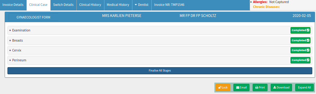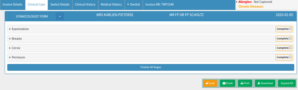 From the Diary click on Clinical >> Gynaecologist Form
