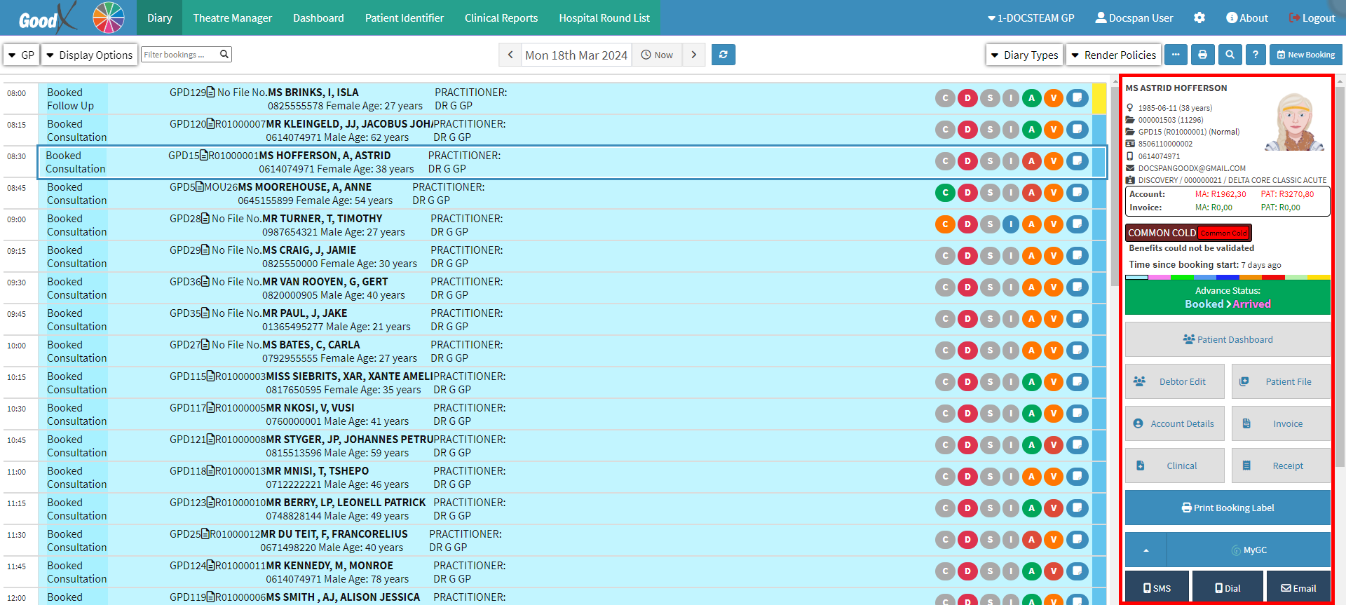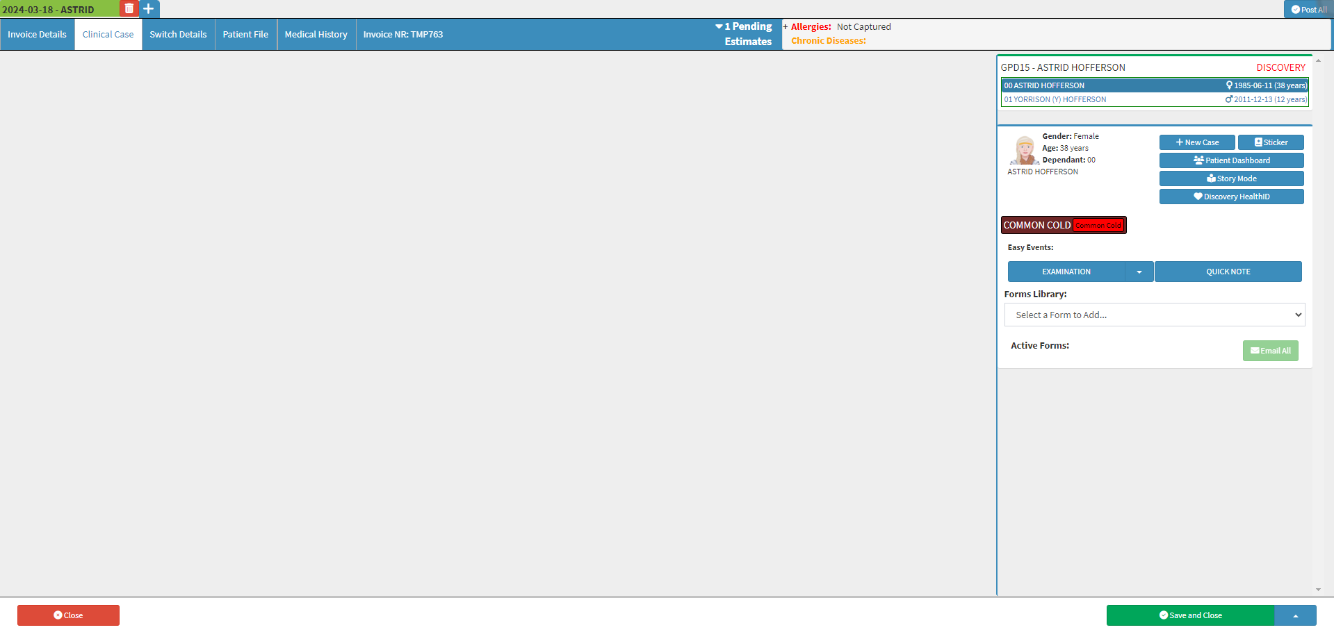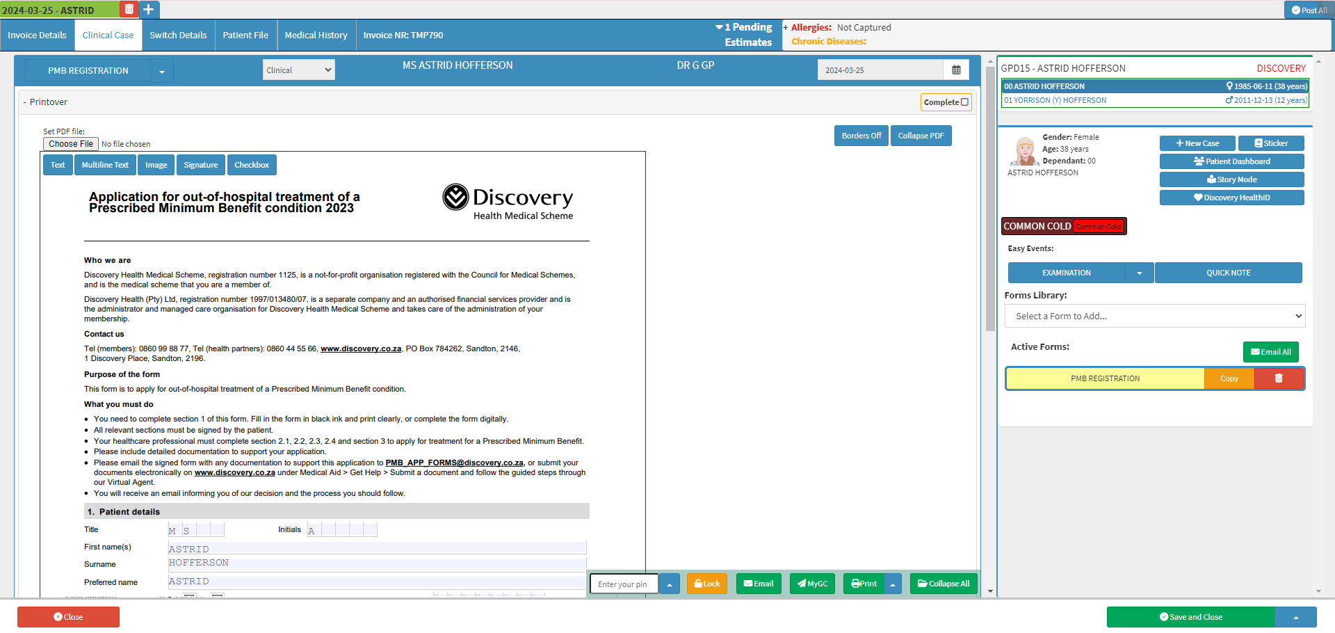 The selected form will open with the fields already filled in with the relevant Patient information.
