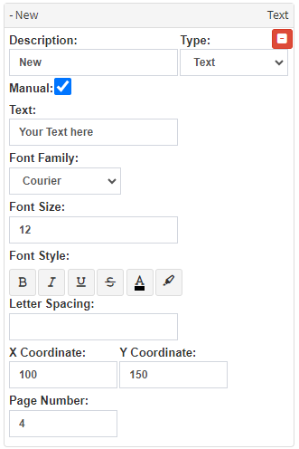 - A new Text panel will be added to the PDF Printover with more options for this specific field.