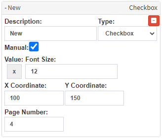 Buttons are available that allow you to quickly add fields to the PDF Printover, making it easier to complete the form.Please Note: All added fields can be dragged and dropped to the desired place on the PDF Printover. For more information on how each field type works and more formatting options, please refer to the user manual: PDF Printover Setup.