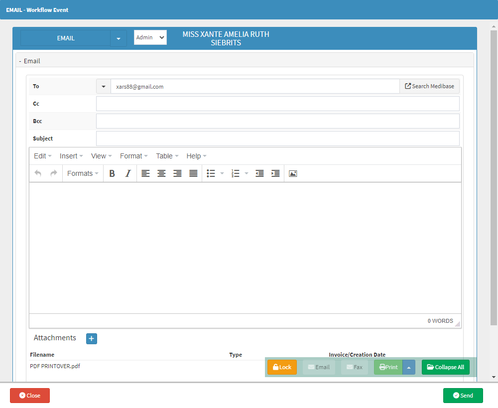 Gives you the ability to send the document back to the Patient.- Click on the Email button.