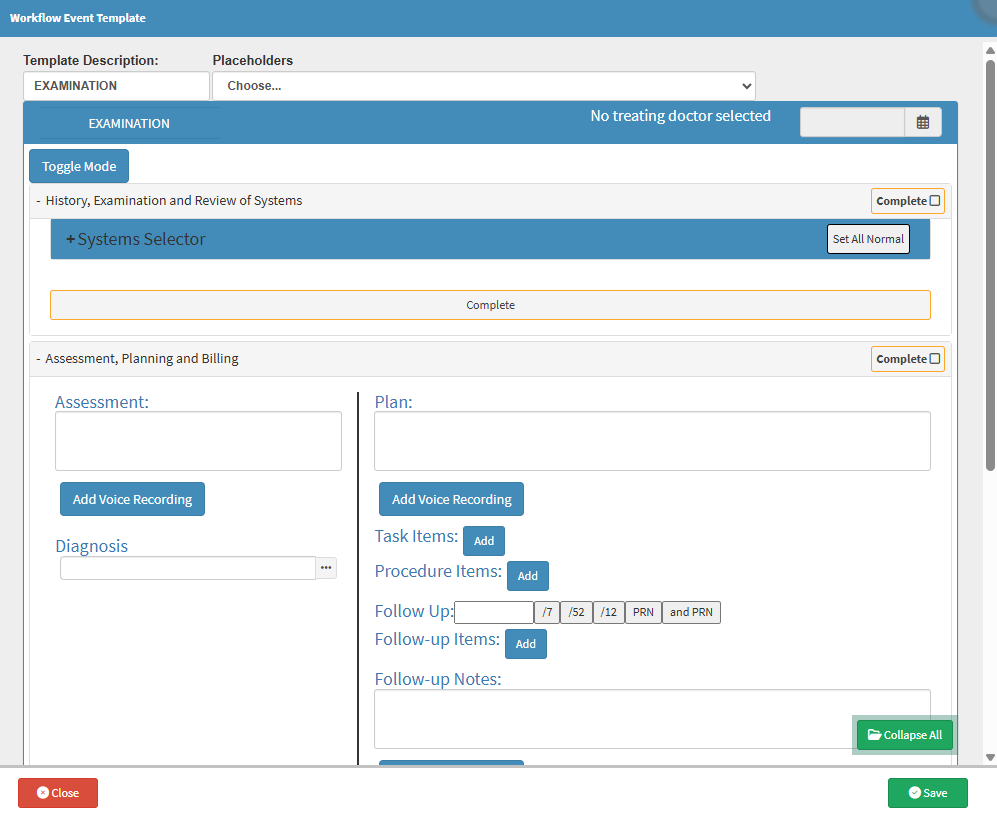 ?Please Note: Depending on the setup of your Examination form, previously added considerations, plans, diagnoses and script items will automatically be added to the section. Anything added during the setup will appear on the clinical form when opened on the Clinical screen.