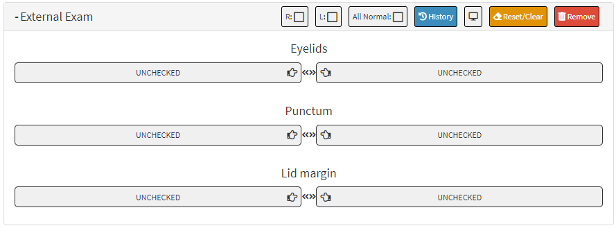 - Untick the L: checkbox to revert the changes and to Uncheck all the fields of the Left eye within the desired panel.
