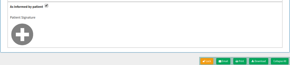 • Patient Signature - an Electronic signature from the Patient that all his/her information is correct. This is not a compulsory field.