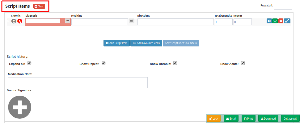• Add Script Item - To add more medication on the script