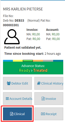 • Click on the Dairy Booking and click on the Clinical button on the Side panel