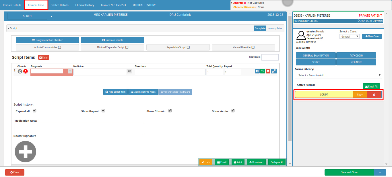• The Script will be used to Prescribe Medication to the patient. The Patient will take this Script to the Pharmacy to get his/her medication.