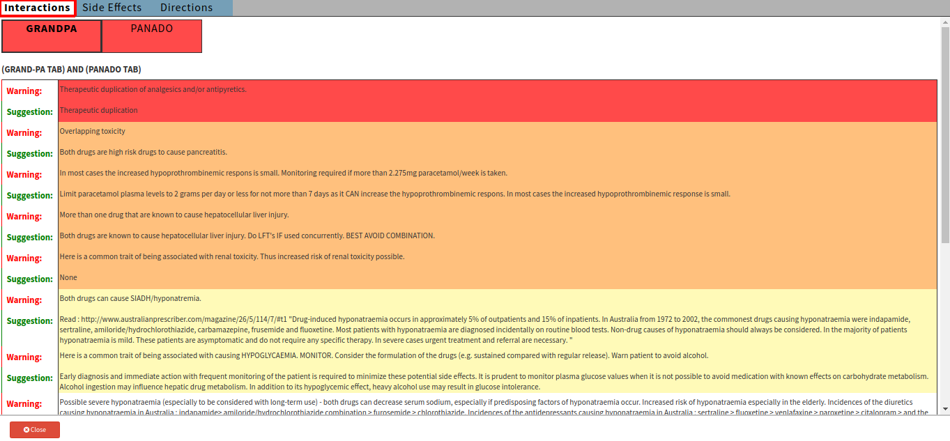 - The Drug Interaction Checker will check if the two drugs that were prescribed interact or not. The following fields will be discussed for each drug: