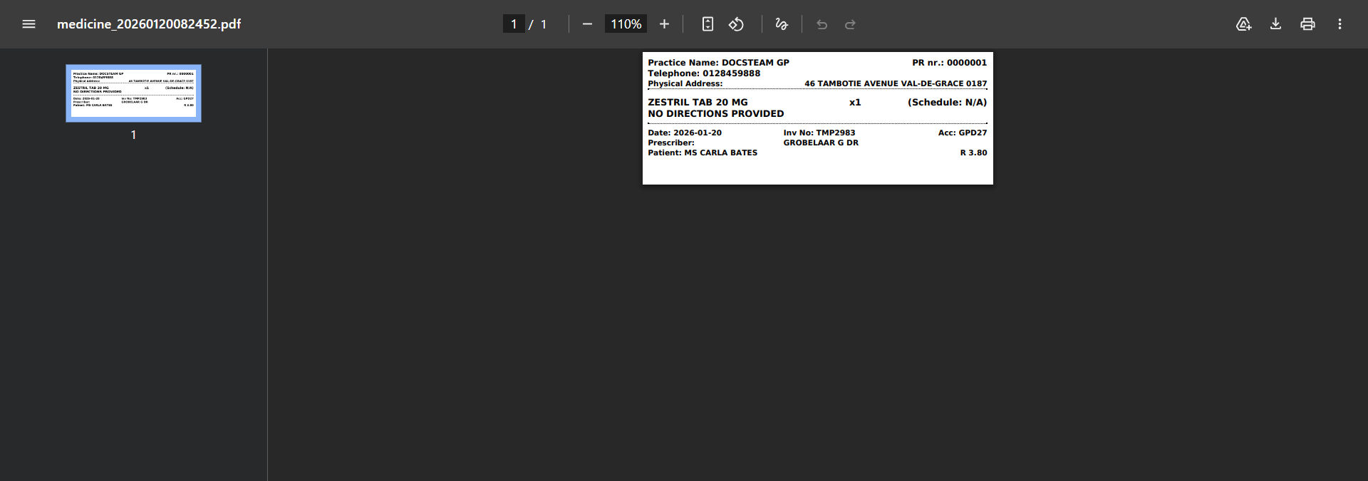 - The Medicine Label will download and open into a PDF format, and will display differently depending on the PDF reader used.