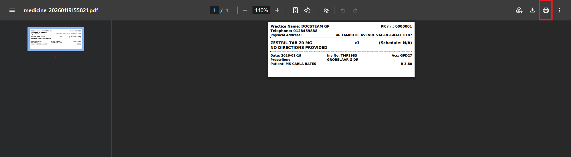 - Click on the Printer button in your desired PDF reader to print out a hard copy of the Medicine Labels.