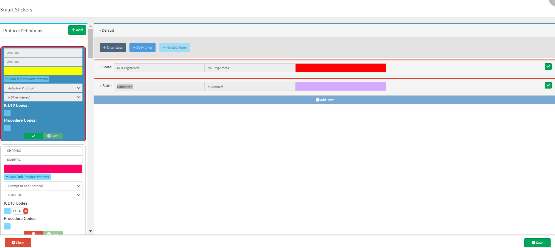 An Enter State is the stage into which a Protocol will enter once the Protocol is added to the Patient. Users are able to select and set up the States that will be used by default.