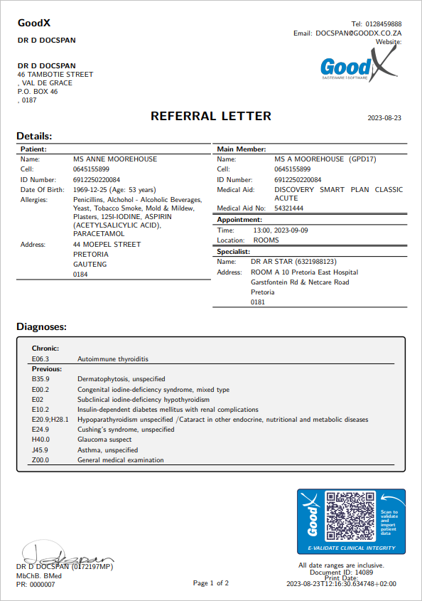 A QR code will appear on the Referral Letter (if set up), enabling a Practitioner to verify that the letter is valid and to download a digital copy of the letter.