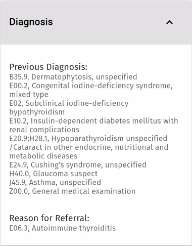 Click on the Diagnosis panel to access Previous Diagnosis and to see the reason why the Patient has been referred.