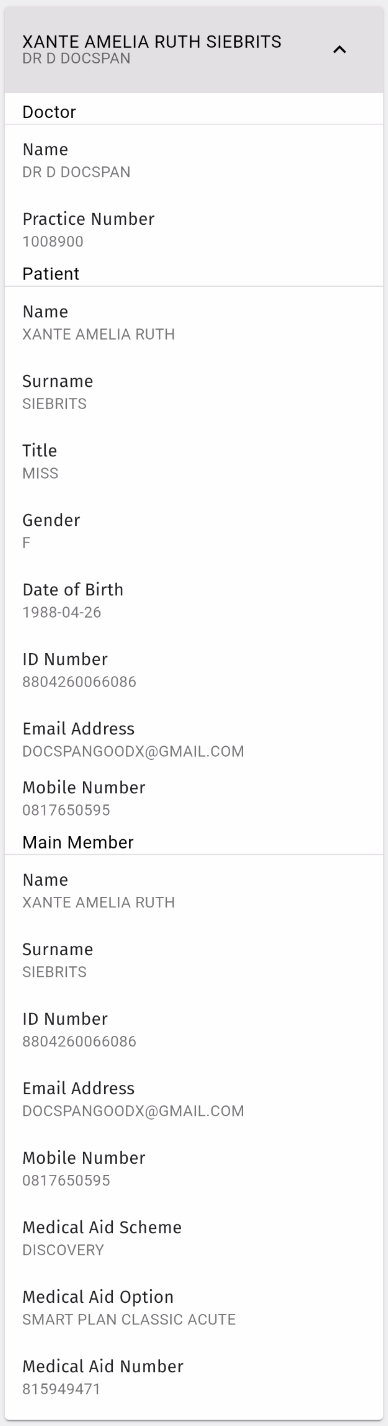 Patient Details: The Demographic details of the person for whom the Referral Letter was issued, the details of the Main Member under which the Patient is a Dependent, as well as the details of the Practitioner who issued the letter.