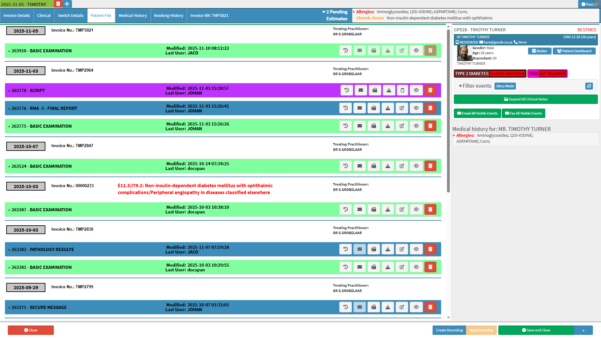 This option will expand all Clinical Events in the Patient File screen, displaying full details for each event at once. This is useful when you want to see all information without opening each Clinical Event individually.