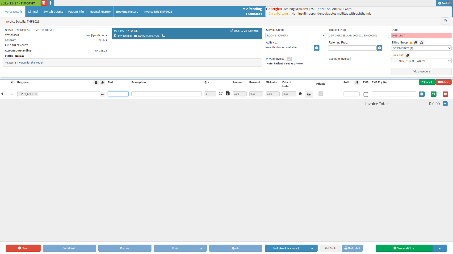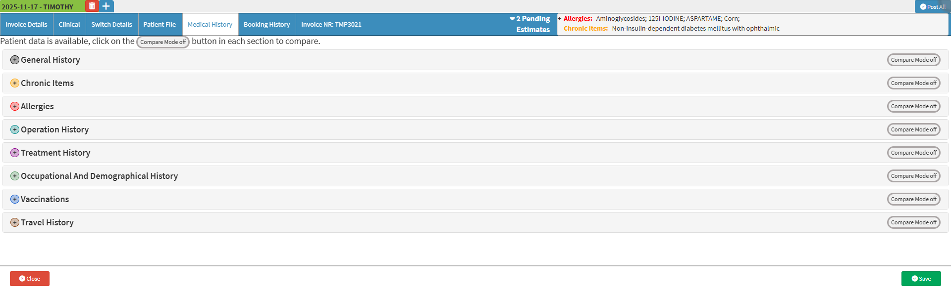 This streamlines access to the Patients' clinical records, enabling Practitioners to review previous treatments, update medical notes, and capture current clinical information with ease. The intuitive layout and organised structure support efficient navigation, ensuring that all relevant medical information is available at a glance, ultimately enhancing workflow, accuracy, and the overall delivery of Patient care.