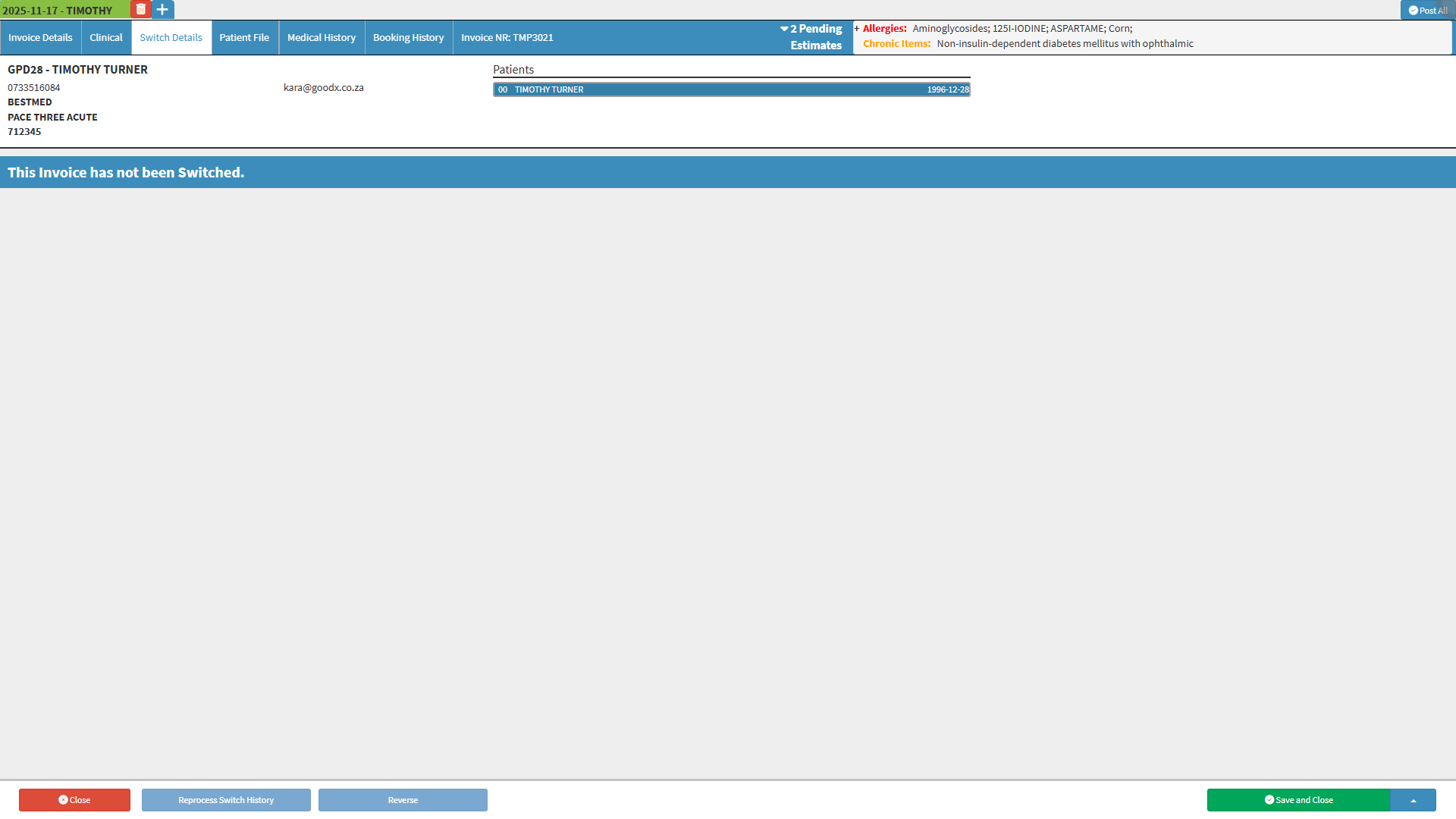 Switching is the process that allows the Practice to submit claims directly and in real-time to all major Medical Aid computer systems. In return, the Practice will receive a Switch Response to their request to indicate whether the claim has been approved or rejected. Switch responses assist the Practice with the Claim Administration process.