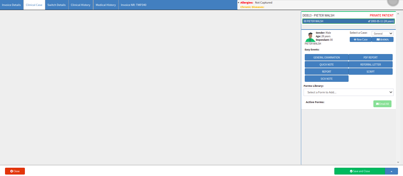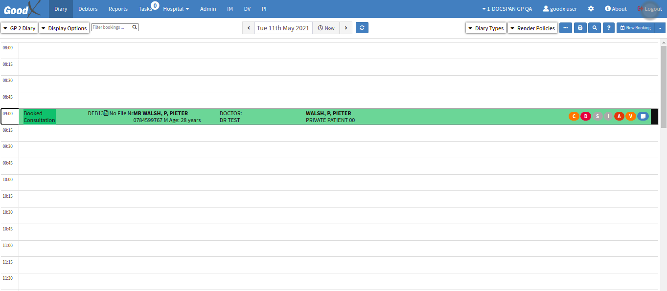 From the Diary screen, click on the correct patient booking. The Sidebar will appear on the right-hand side of the screen.