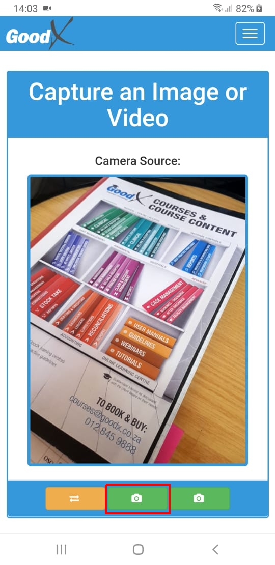 After taking your photo or video, you can choose to either upload it onto your GoodX Web or delete it to start over.