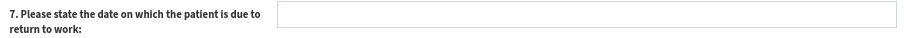 - 7. Please state the date on which the patient is due to return to work: The date that the Practitioner predicts that the patient will be able to return to work.