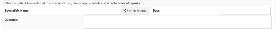 - 3. Has the patient been referred to a specialist? If so, please supply details and attach copies of reports: If the patient has been referred to a specialist regarding their IOD.