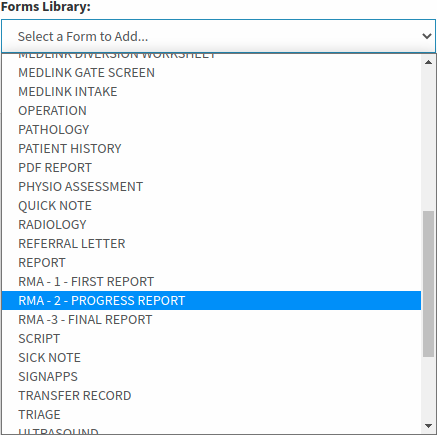 - Click on the Forms Library drop-down menu on the Clinical Sidebar.