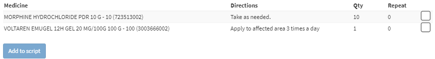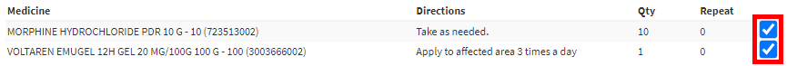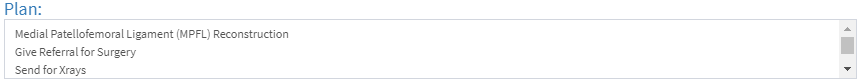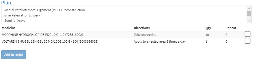 - Medicine Items: Items that have been set up with the customisation of the form will automatically appear in the Plan section when the Considerations were selected on which Script Items were added.