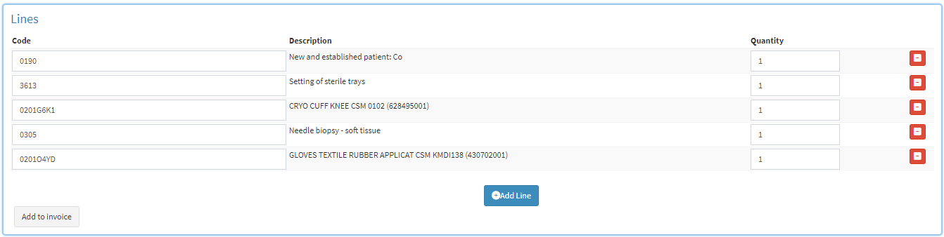 - Click on the Add to Invoice button to add all the Billing Codes in the Lines section to an Invoice.