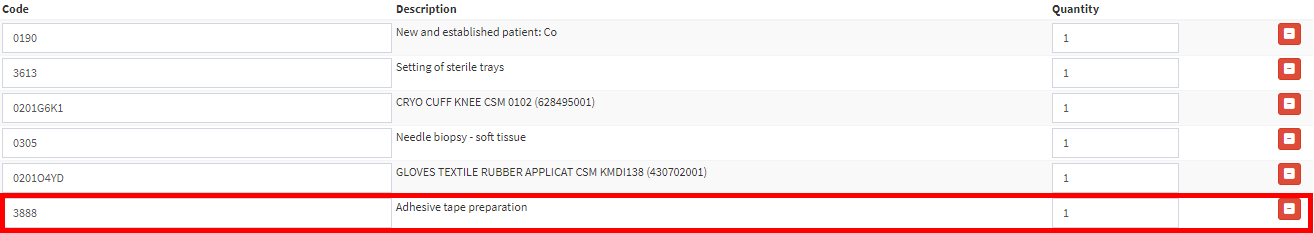 - Click on the desired Option to make a selection. The Billing Code will now be added to the list of Line Items.