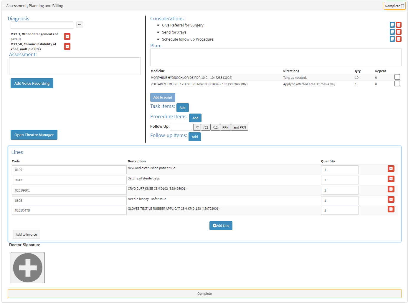 Please Note: With customisation of the form it is possible to add your Billing Codes attached to different Considerations and Options that are selected, for your Billing to be simple, fast and efficient.