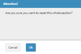 - An Attention! pop-up will appear to ask the user whether they are sure that they would like to reset the entire section.