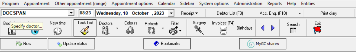 - If a user is responsible for updating more than one Doctor's Diary, there is an option to view the Diary for more than one Doctor