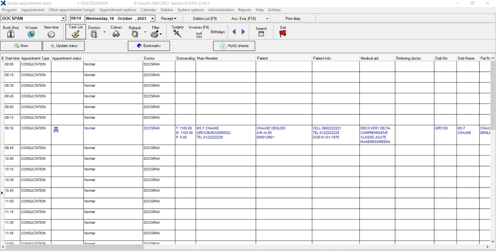 If you want to create multiple bookings for the medical practitioner to organise his diary, you can use the Range of Appointments function. Range of Appointments can be used eg to book regular hospital rounds,